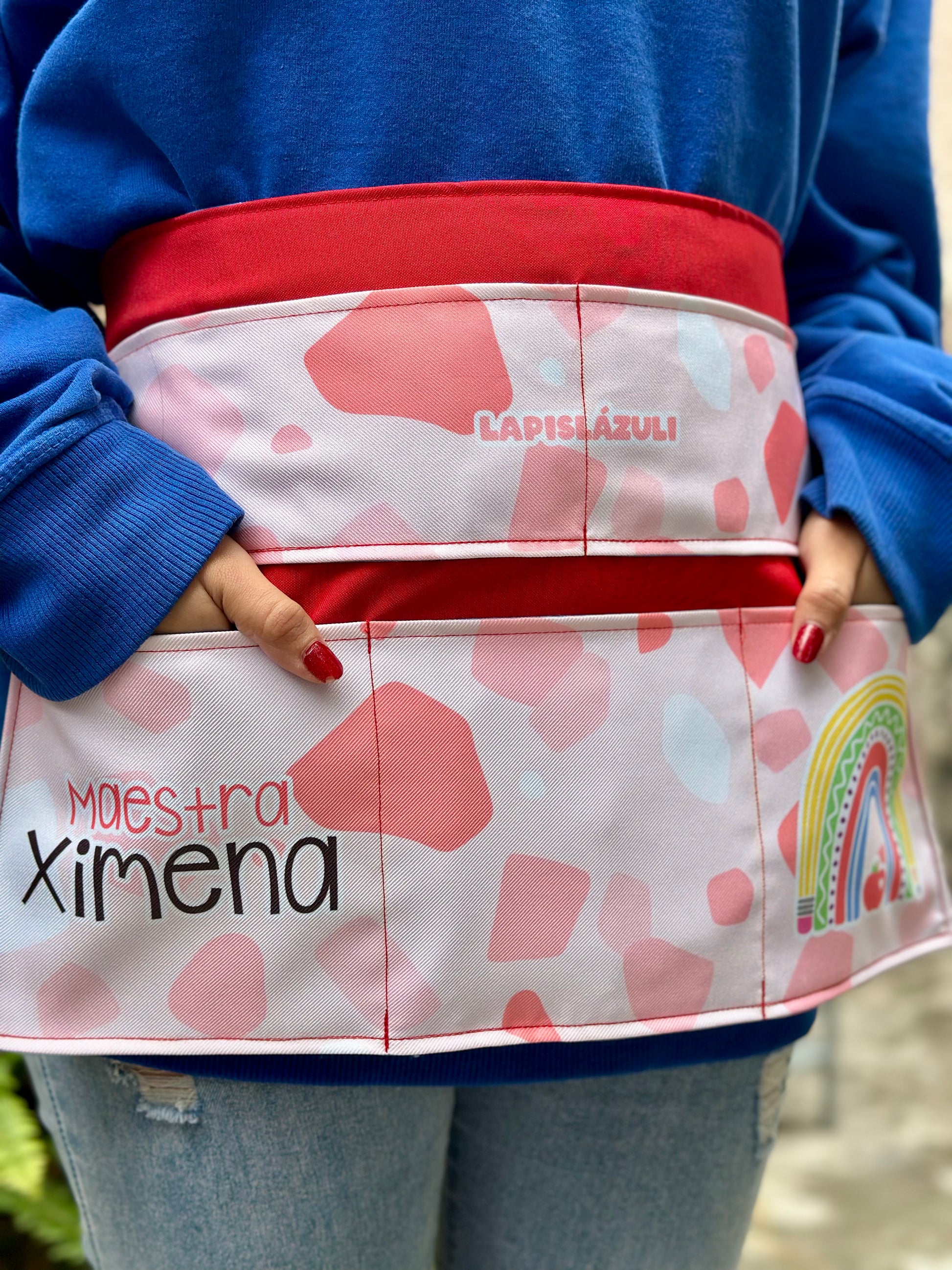 Delantal Personalizado de Arcoíris Lápiz Boho Rojo