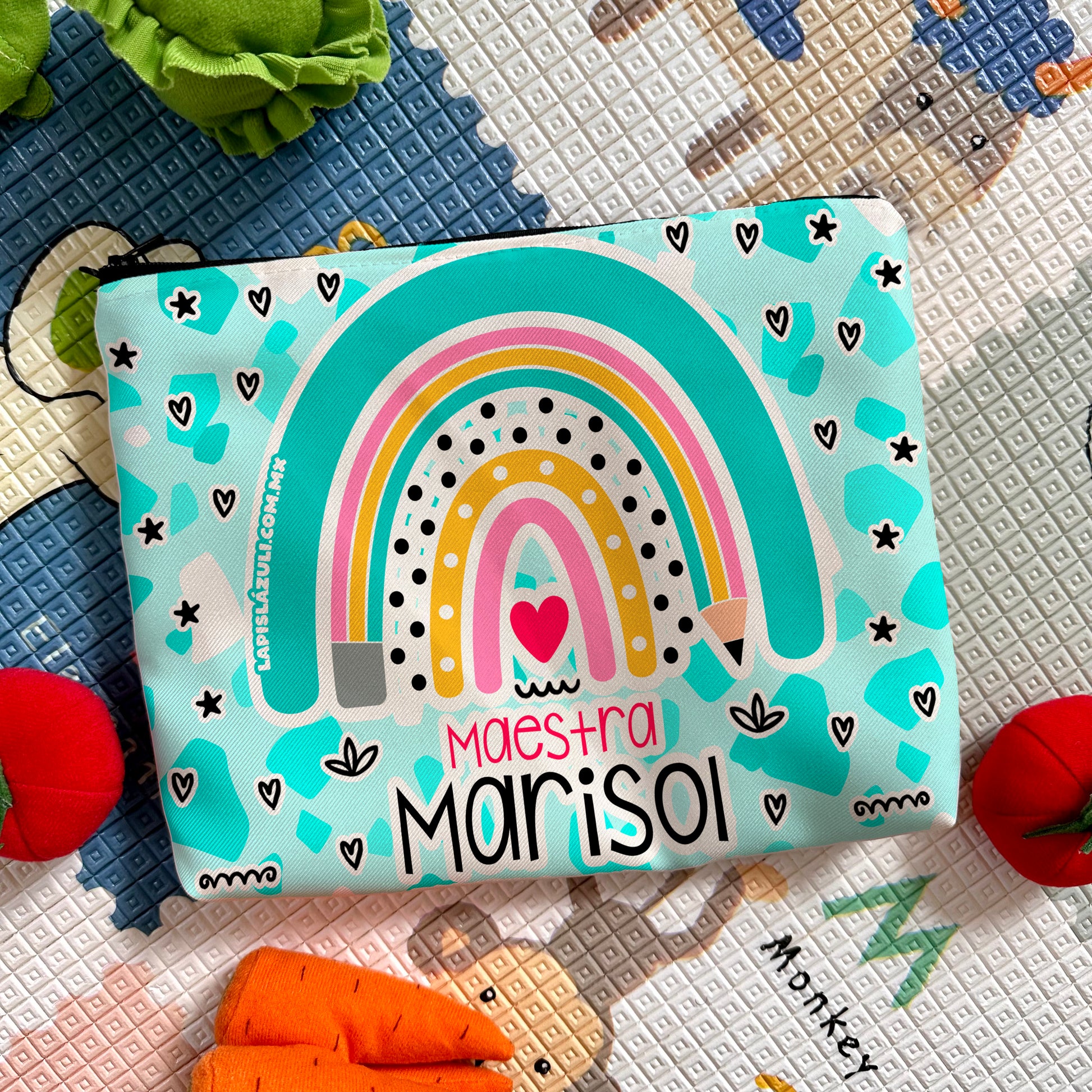 Guarda tus plumas, colores y plumones en una lapicera que alegra el día con solo verla. Diseñada para maestras, estudiantes o fans de los arcoíris que quieren algo hermoso y práctico.