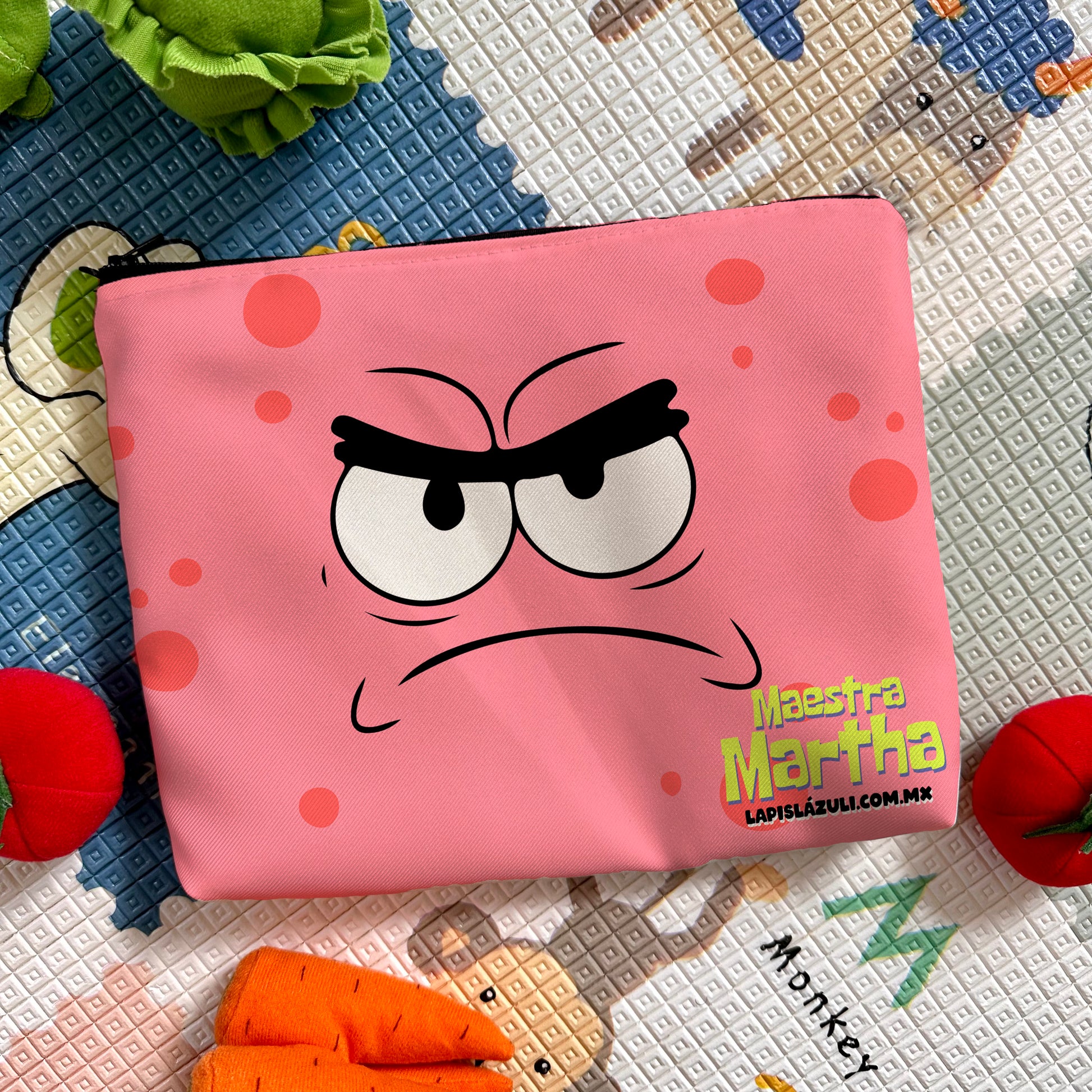 Guarda tus plumas, colores y plumones en una lapicera que alegra el día con solo verla. Diseñada para maestras, estudiantes o fans de Patricio que quieren algo hermoso y práctico.