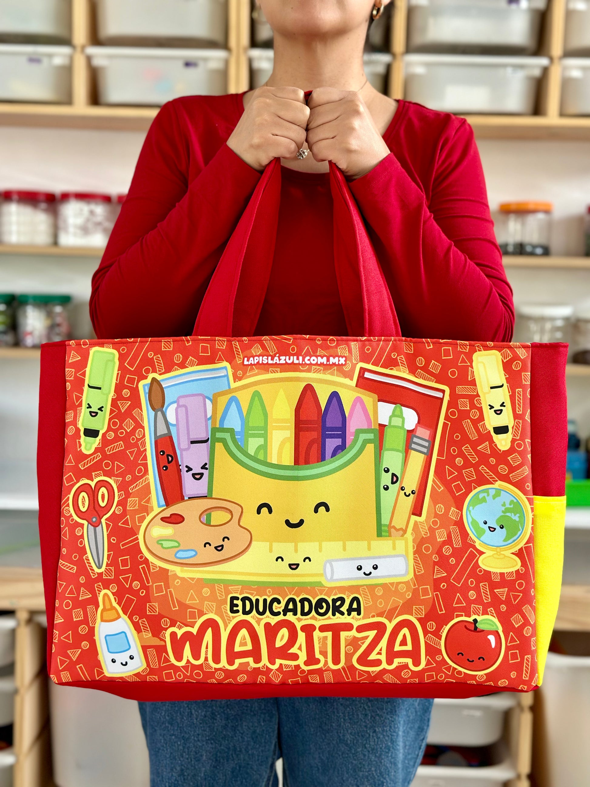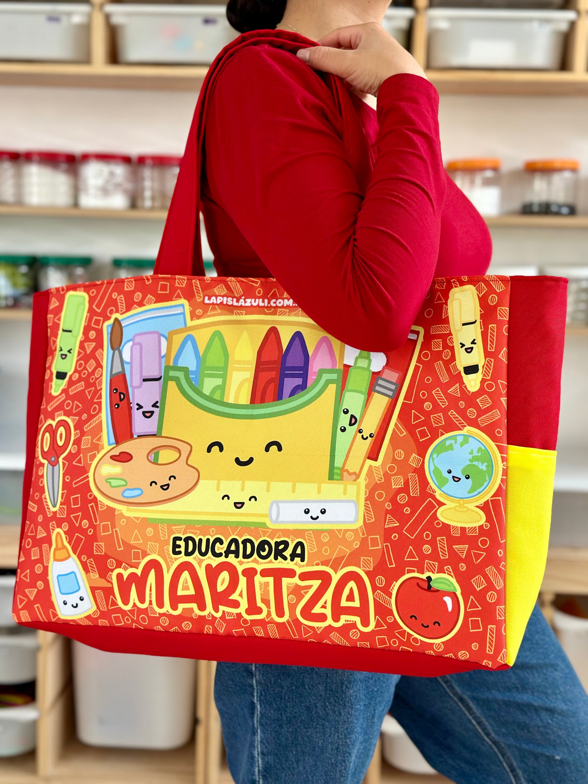 Cada diseño está hecho pensando en ti, en tu creatividad y en el ambiente educativo. Con detalles únicos que reflejan tu pasión por enseñar, tu bolsa se convertirá en una extensión de tu personalidad.