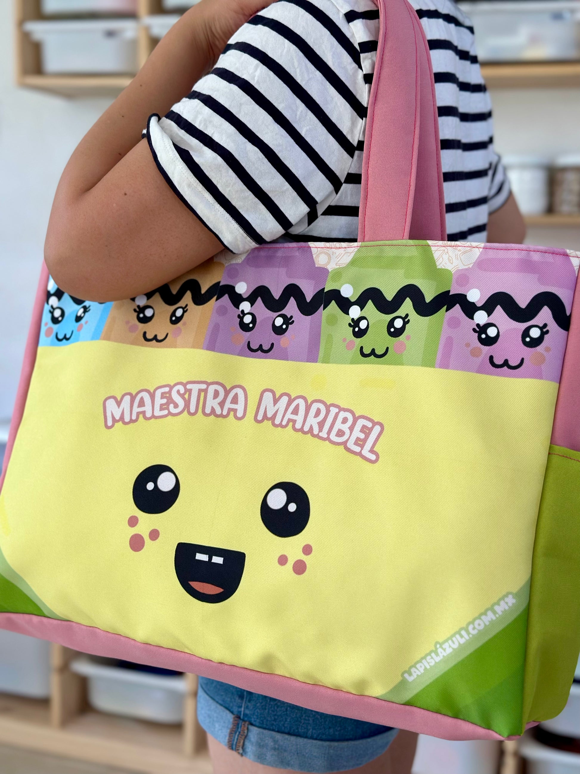 Cada diseño está hecho pensando en ti, en tu creatividad y en el ambiente educativo. Con detalles únicos que reflejan tu pasión por enseñar, tu bolsa se convertirá en una extensión de tu personalidad.