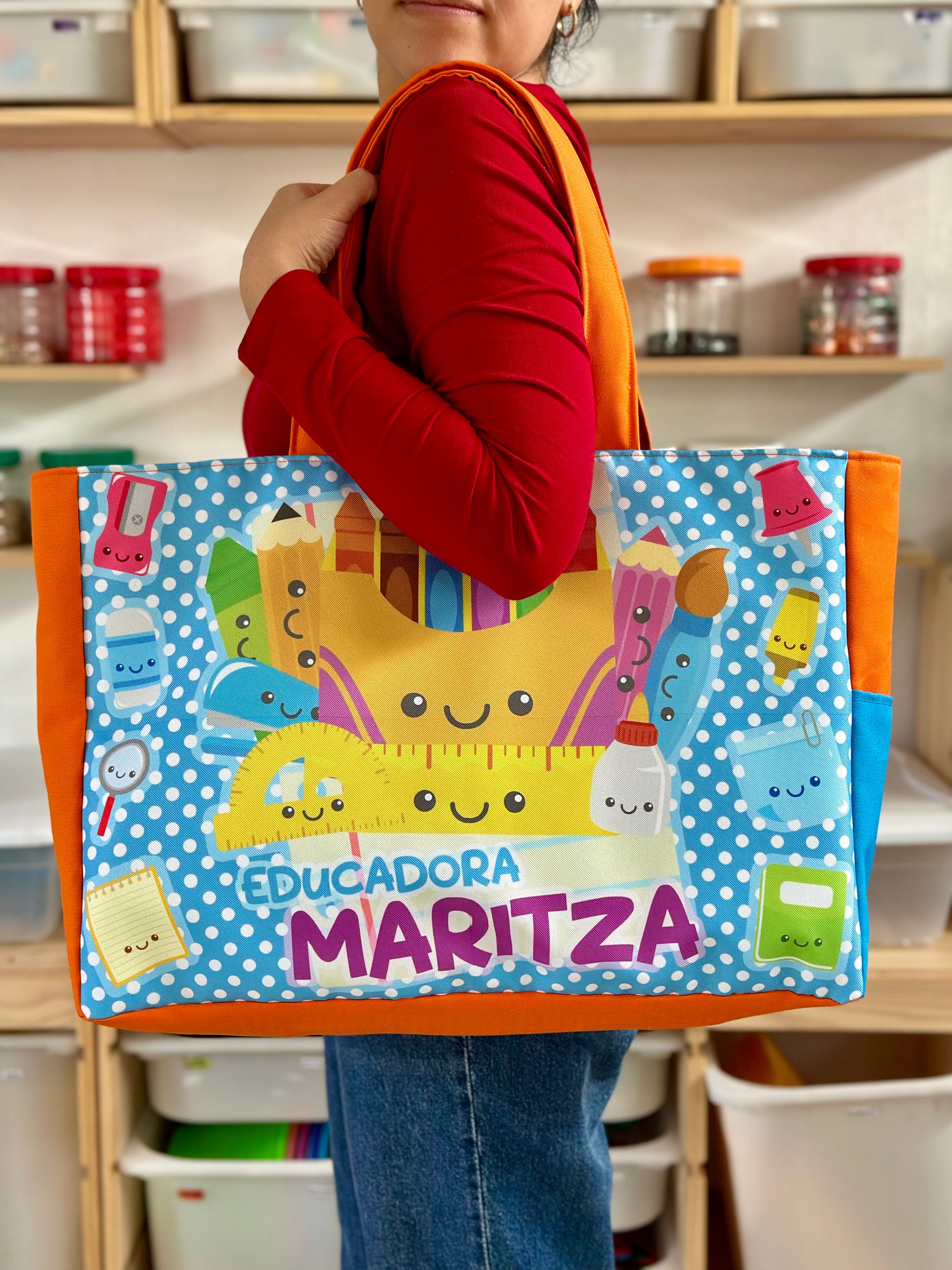 Cada diseño está hecho pensando en ti, en tu creatividad y en el ambiente educativo. Con detalles únicos que reflejan tu pasión por enseñar, tu bolsa se convertirá en una extensión de tu personalidad.