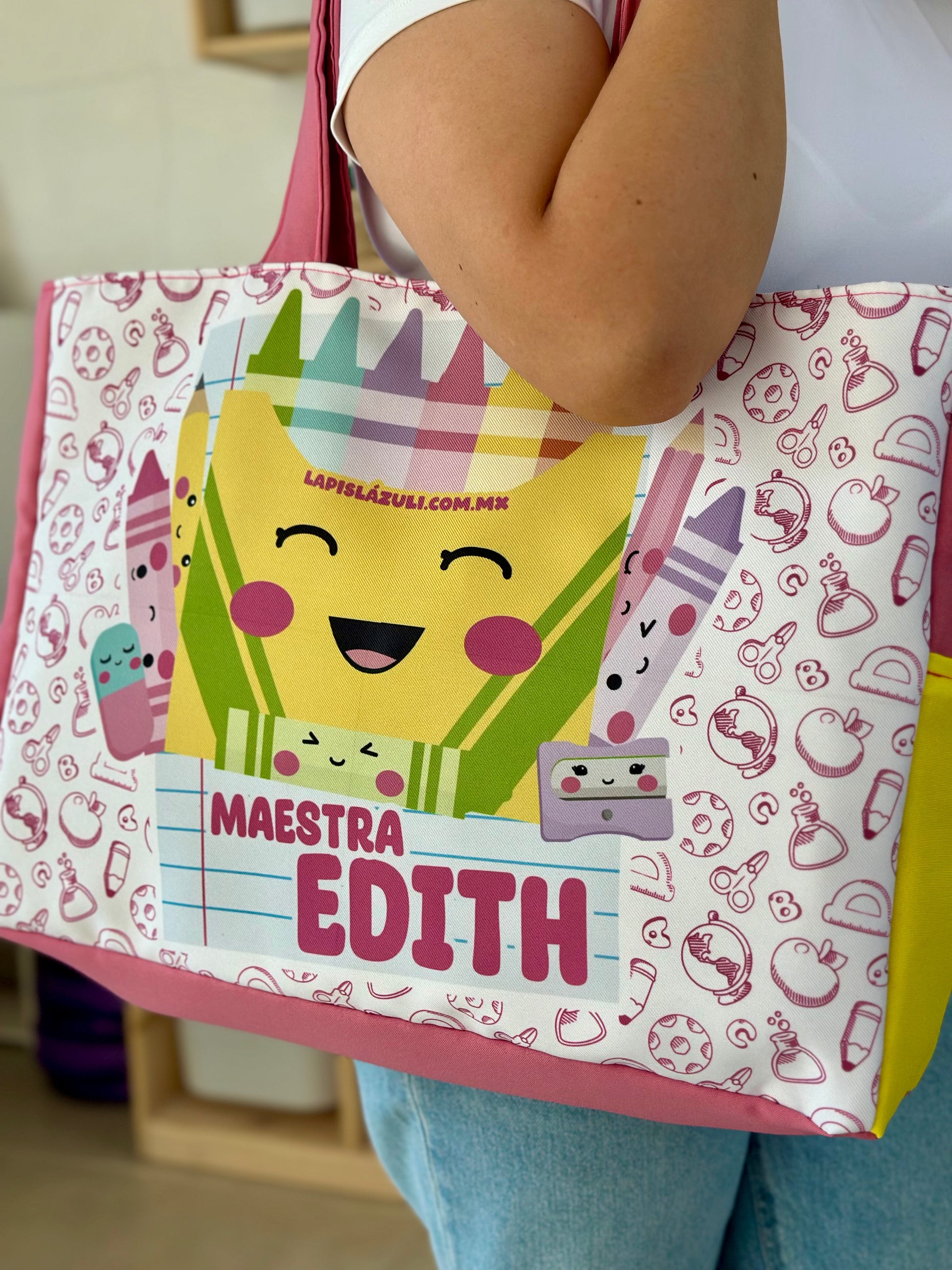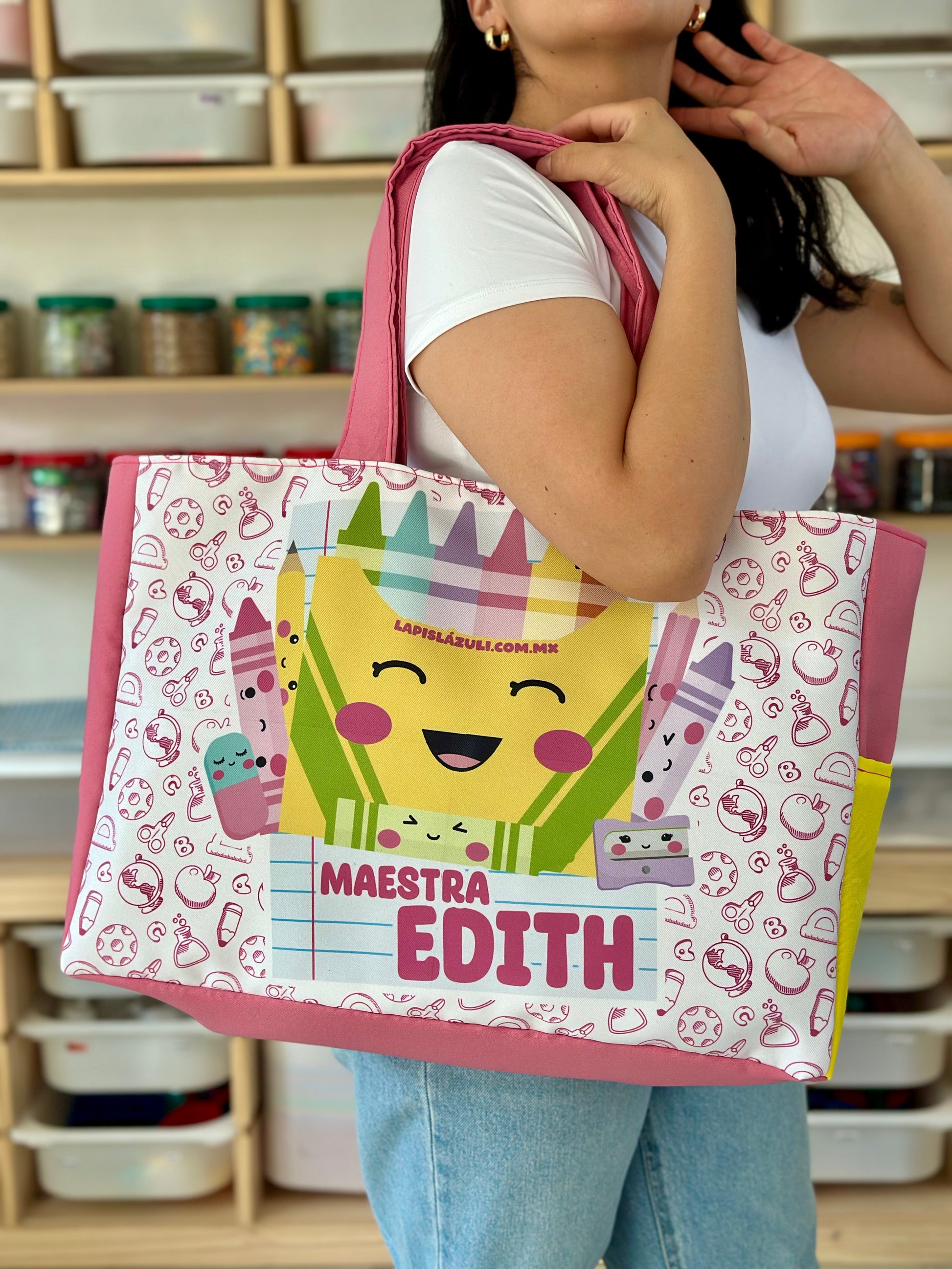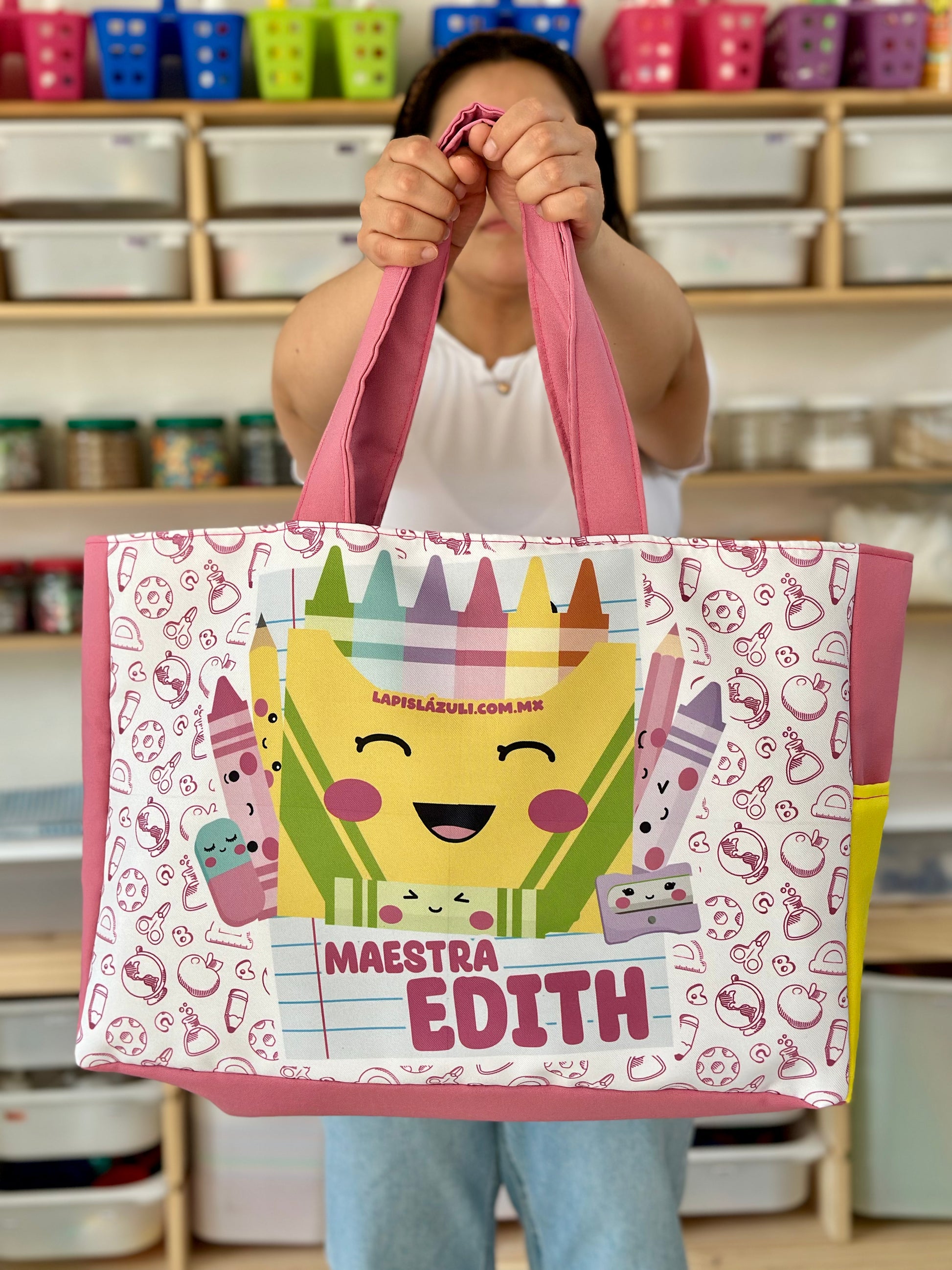 Cada diseño está hecho pensando en ti, en tu creatividad y en el ambiente educativo. Con detalles únicos que reflejan tu pasión por enseñar, tu bolsa se convertirá en una extensión de tu personalidad.