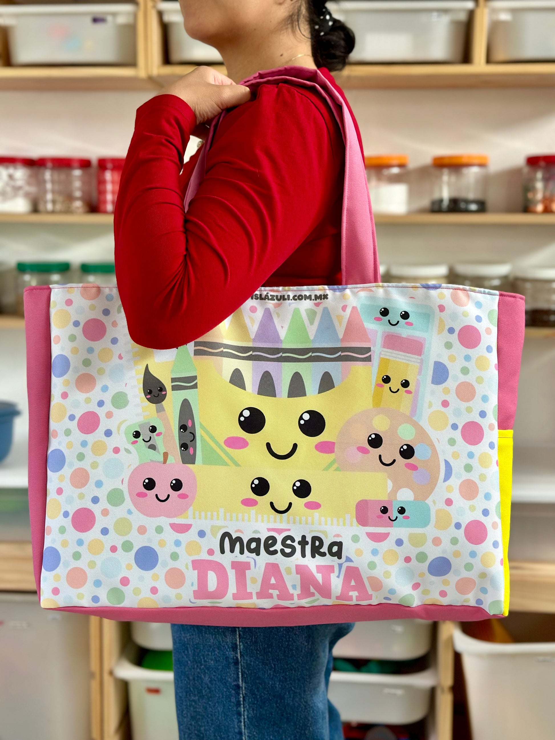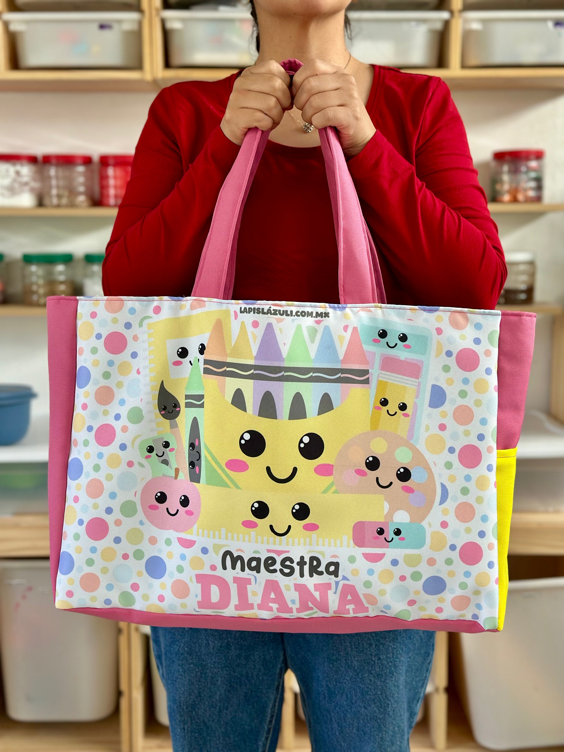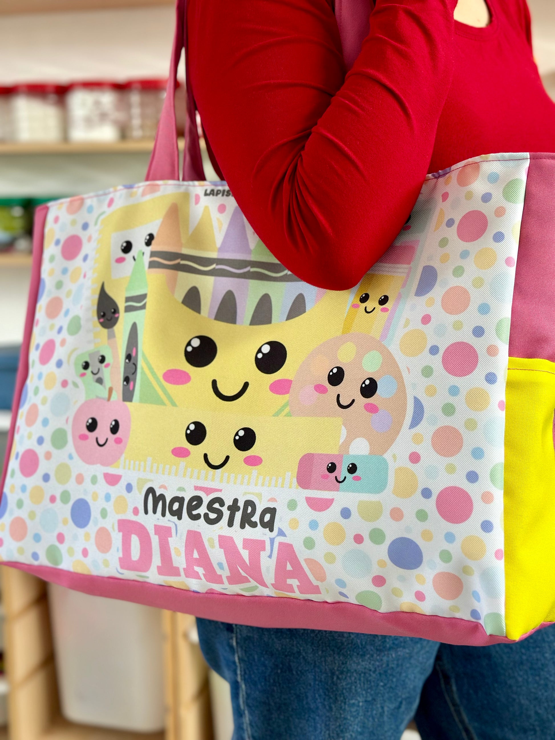 Cada diseño está hecho pensando en ti, en tu creatividad y en el ambiente educativo. Con detalles únicos que reflejan tu pasión por enseñar, tu bolsa se convertirá en una extensión de tu personalidad.
