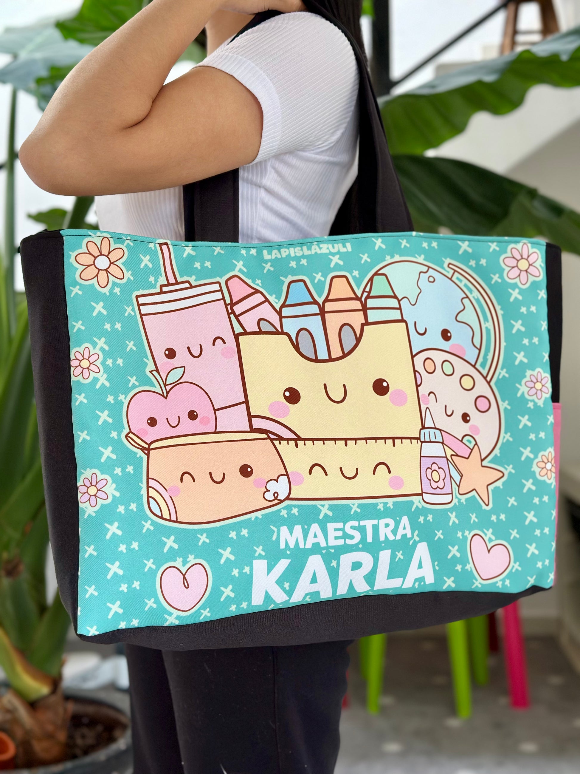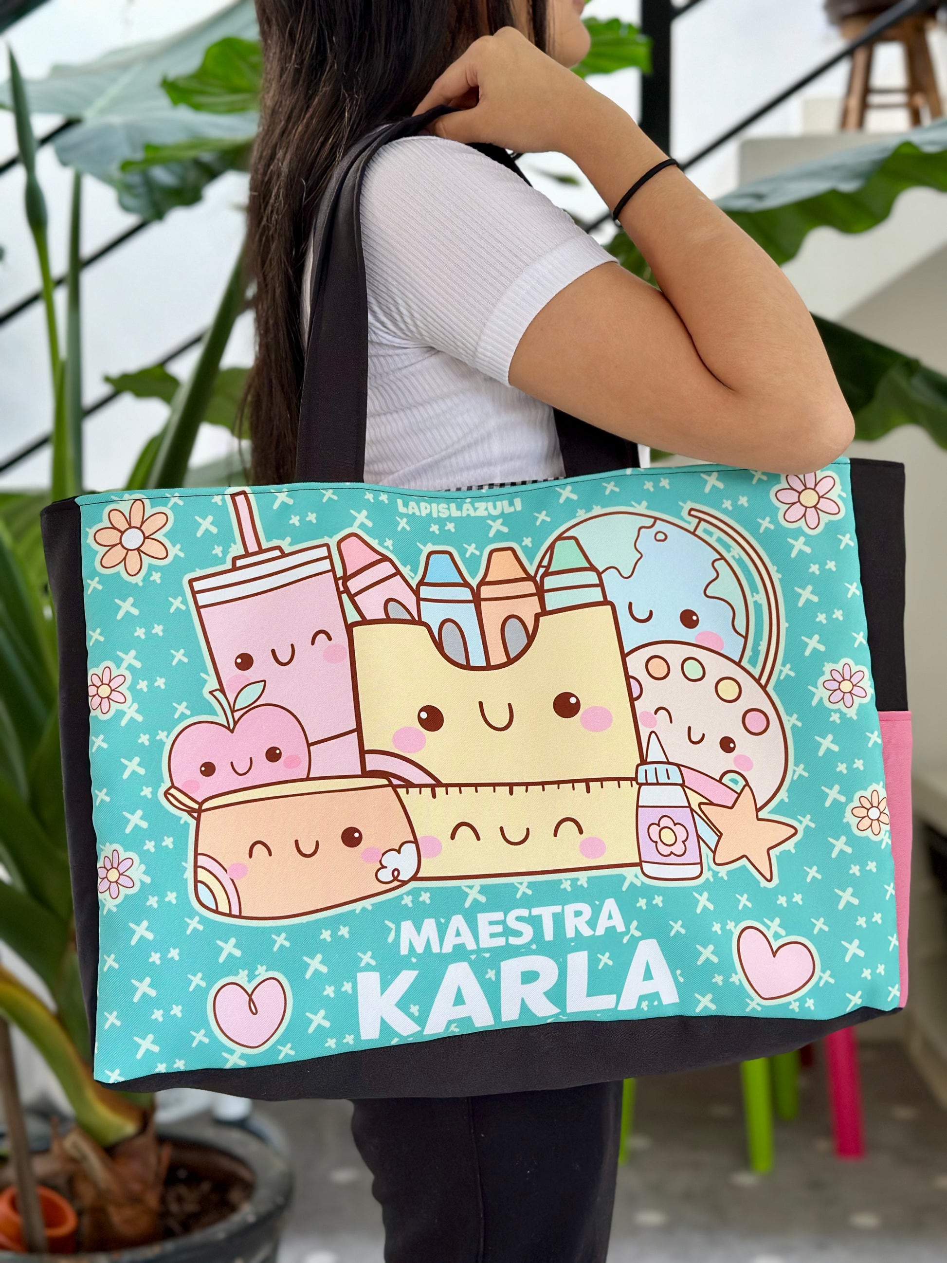Cada diseño está hecho pensando en ti, en tu creatividad y en el ambiente educativo. Con detalles únicos que reflejan tu pasión por enseñar, tu bolsa se convertirá en una extensión de tu personalidad.