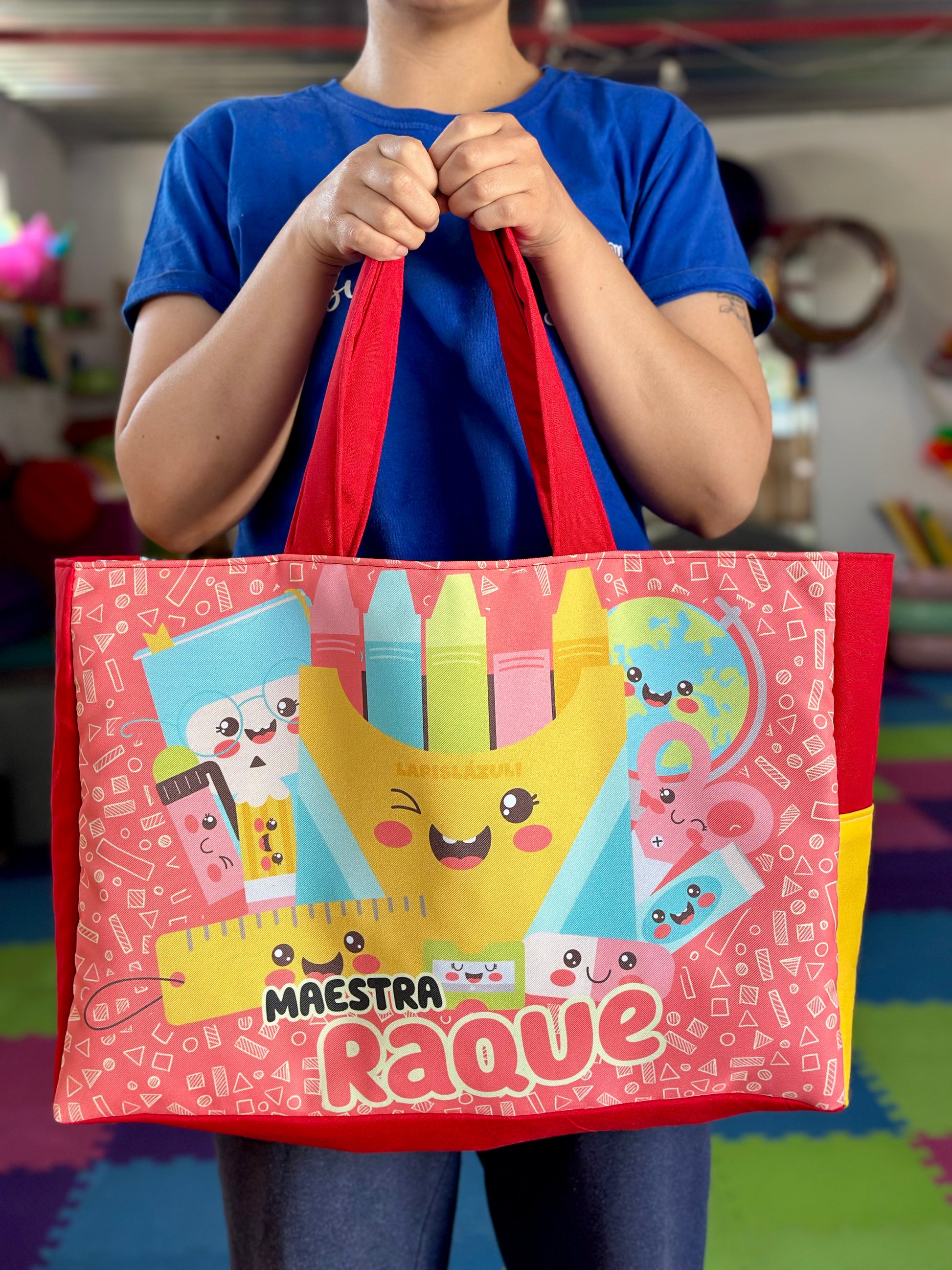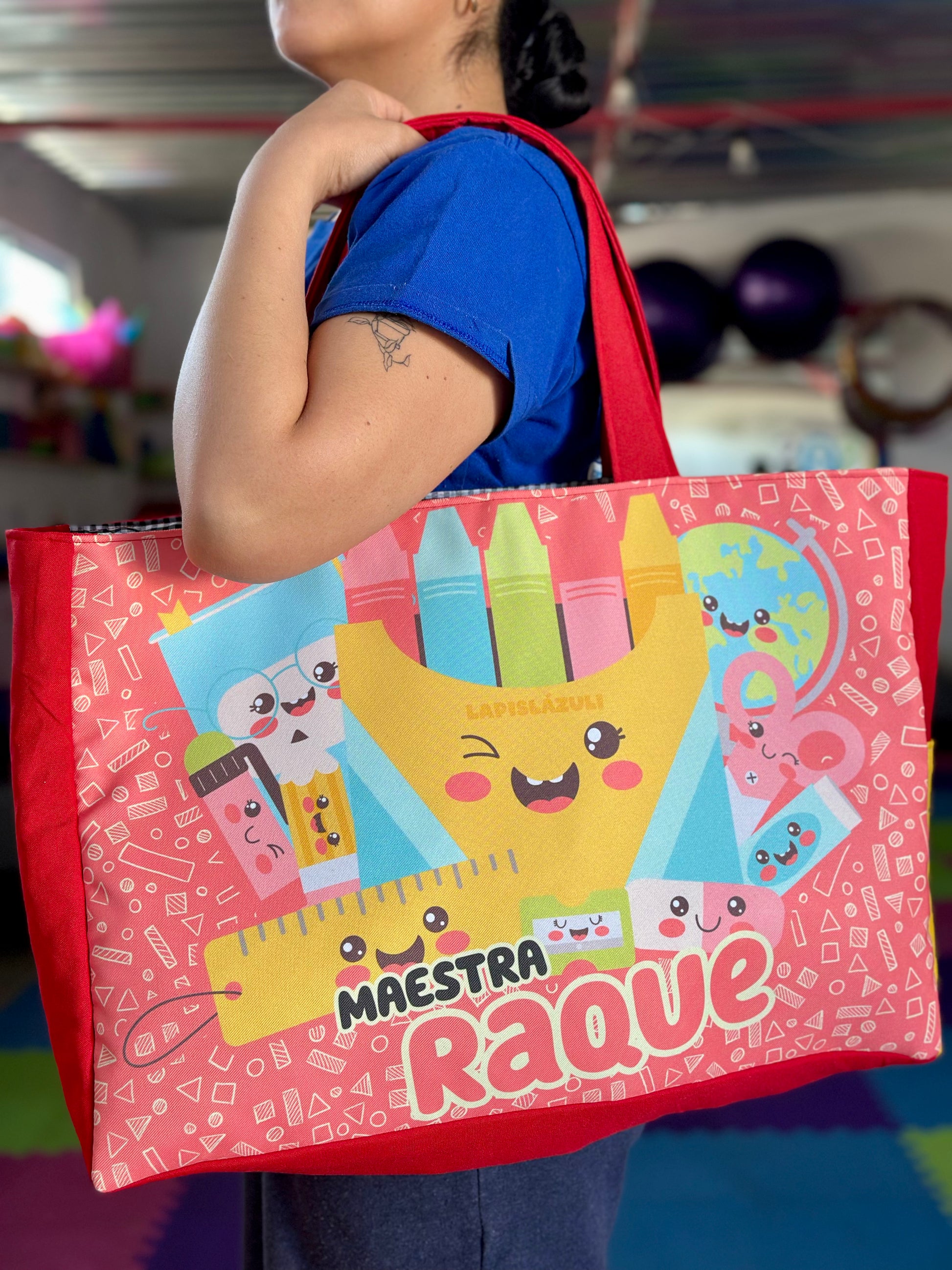 Cada diseño está hecho pensando en ti, en tu creatividad y en el ambiente educativo. Con detalles únicos que reflejan tu pasión por enseñar, tu bolsa se convertirá en una extensión de tu personalidad.