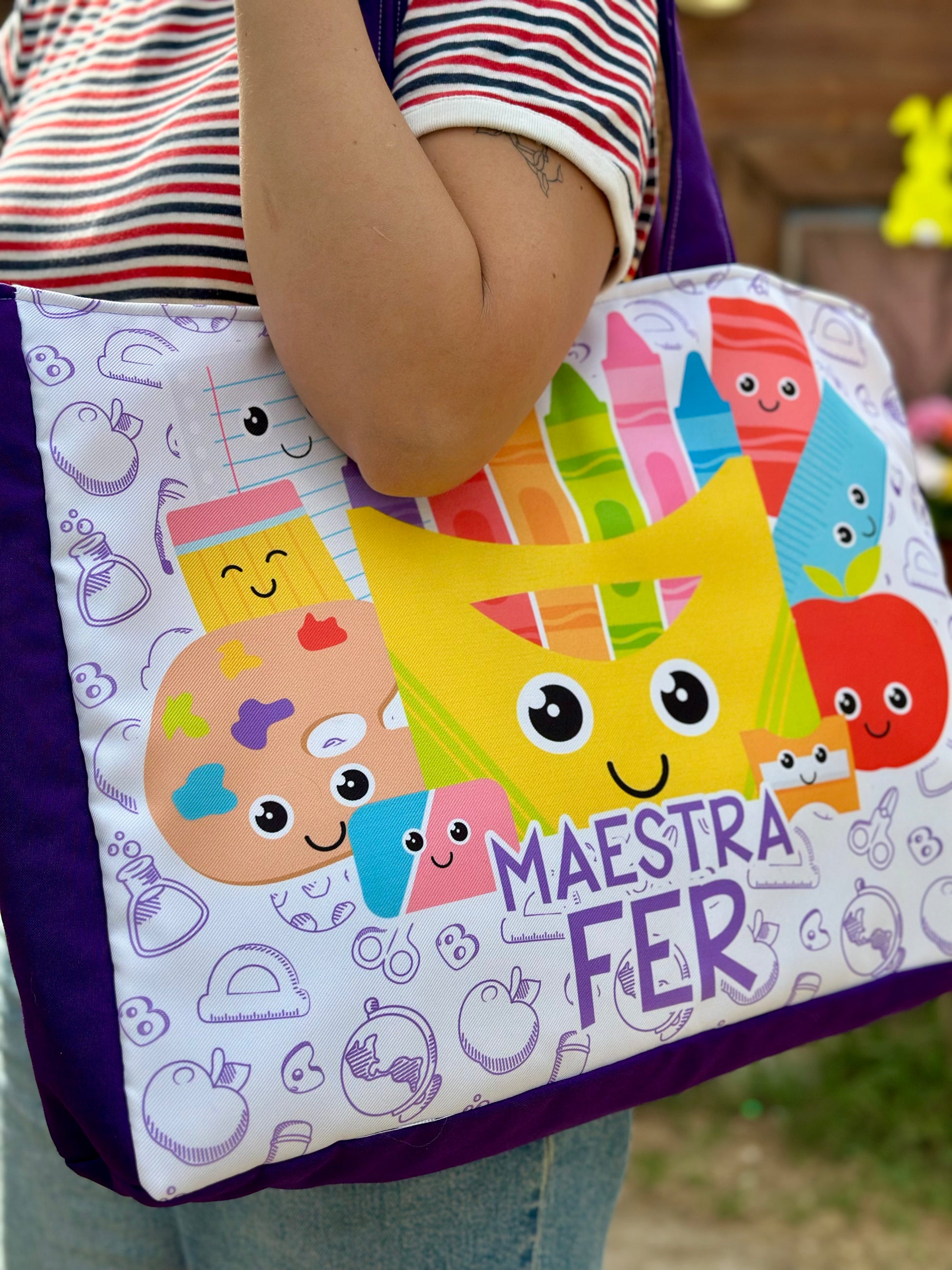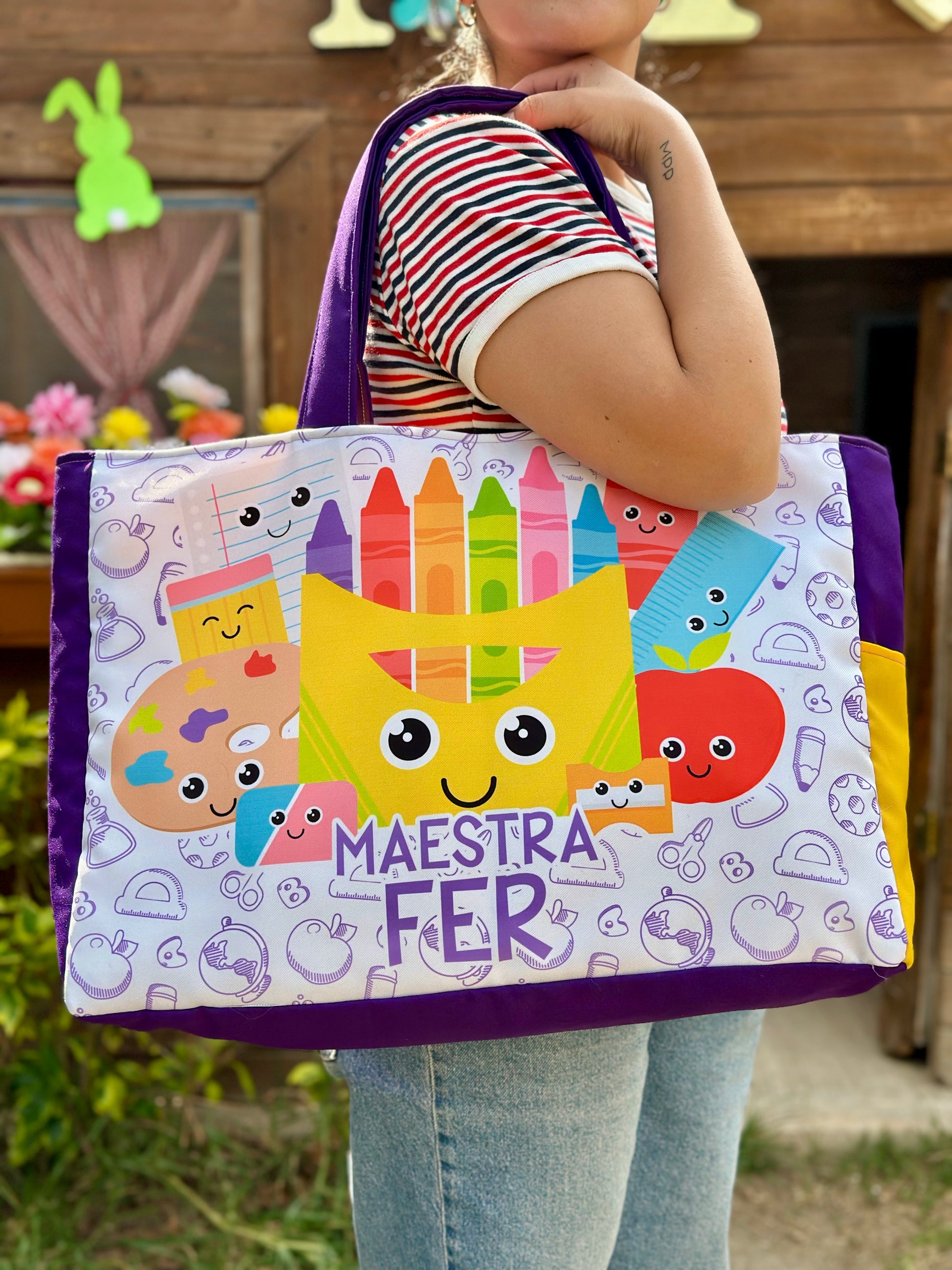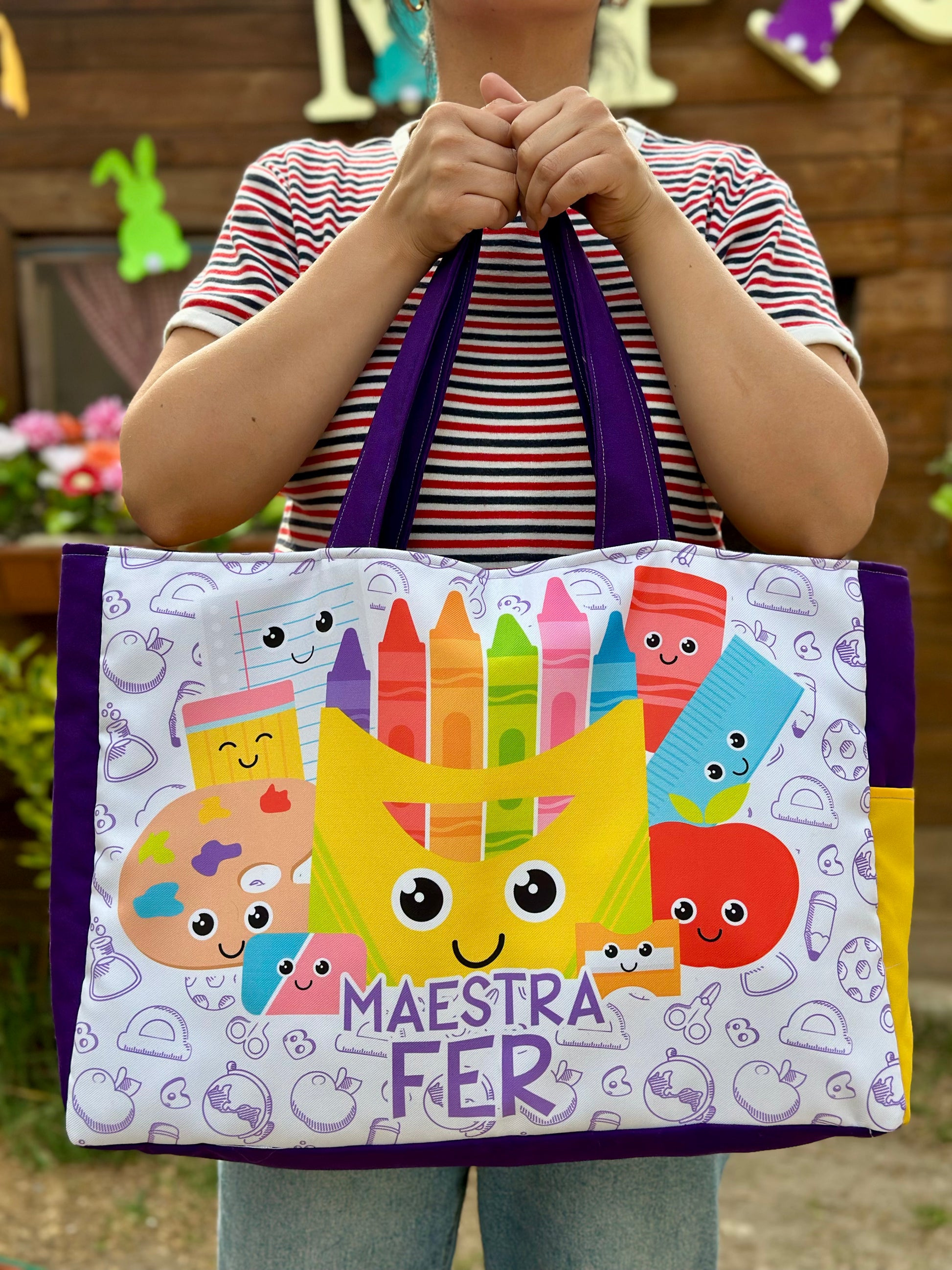 Cada diseño está hecho pensando en ti, en tu creatividad y en el ambiente educativo. Con detalles únicos que reflejan tu pasión por enseñar, tu bolsa se convertirá en una extensión de tu personalidad.