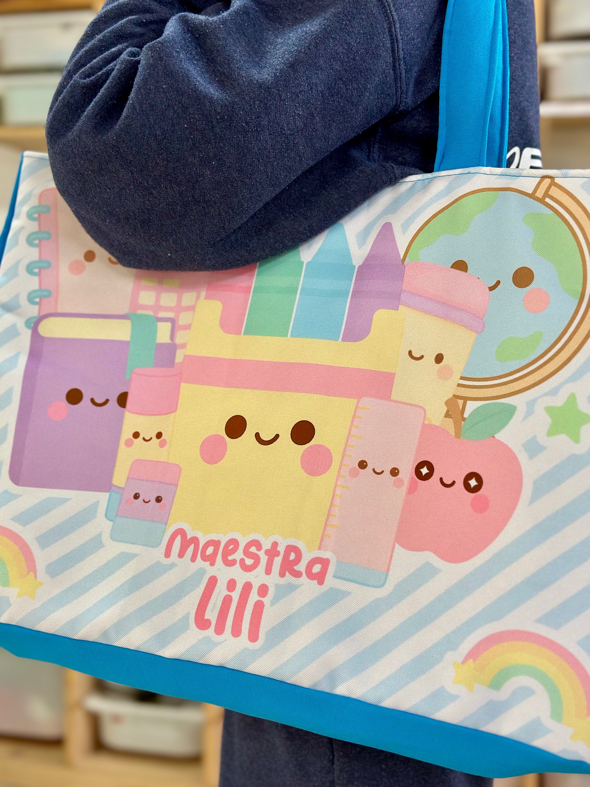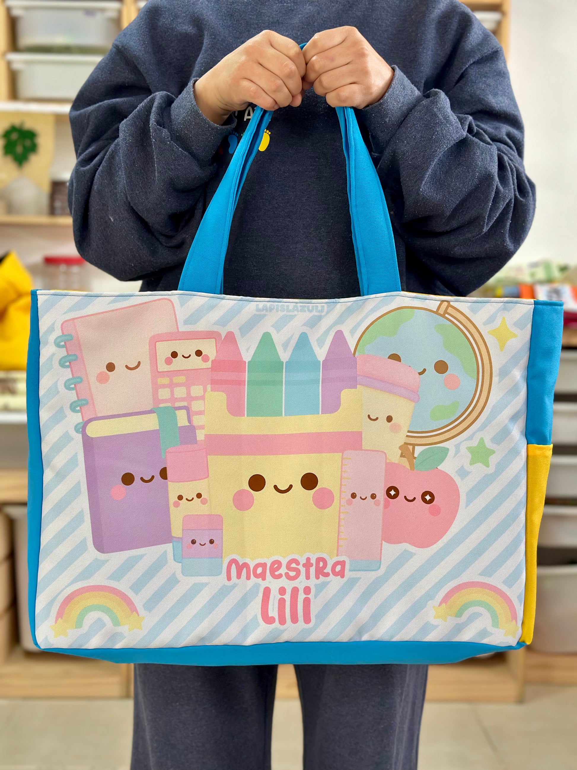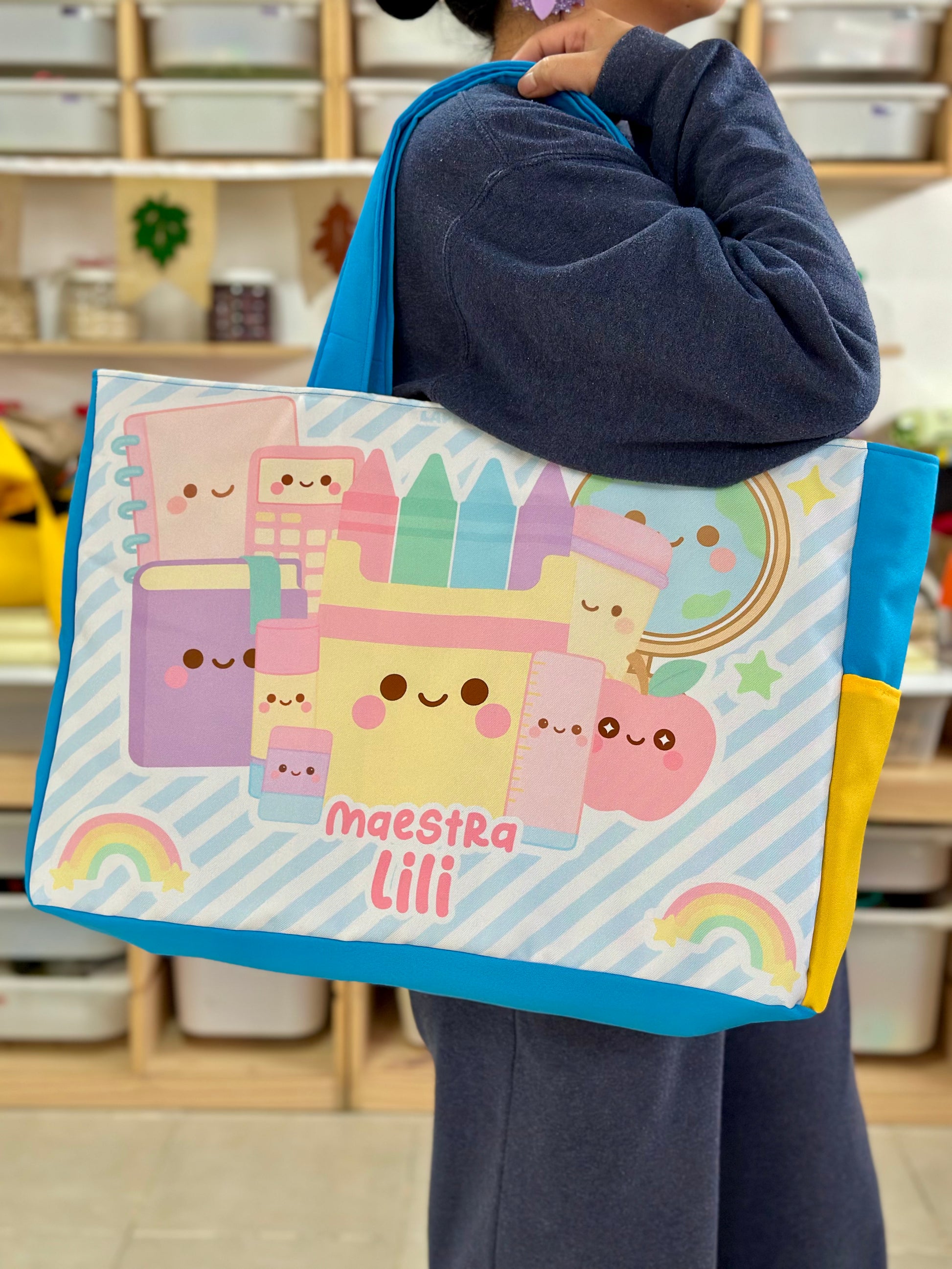 Cada diseño está hecho pensando en ti, en tu creatividad y en el ambiente educativo. Con detalles únicos que reflejan tu pasión por enseñar, tu bolsa se convertirá en una extensión de tu personalidad.