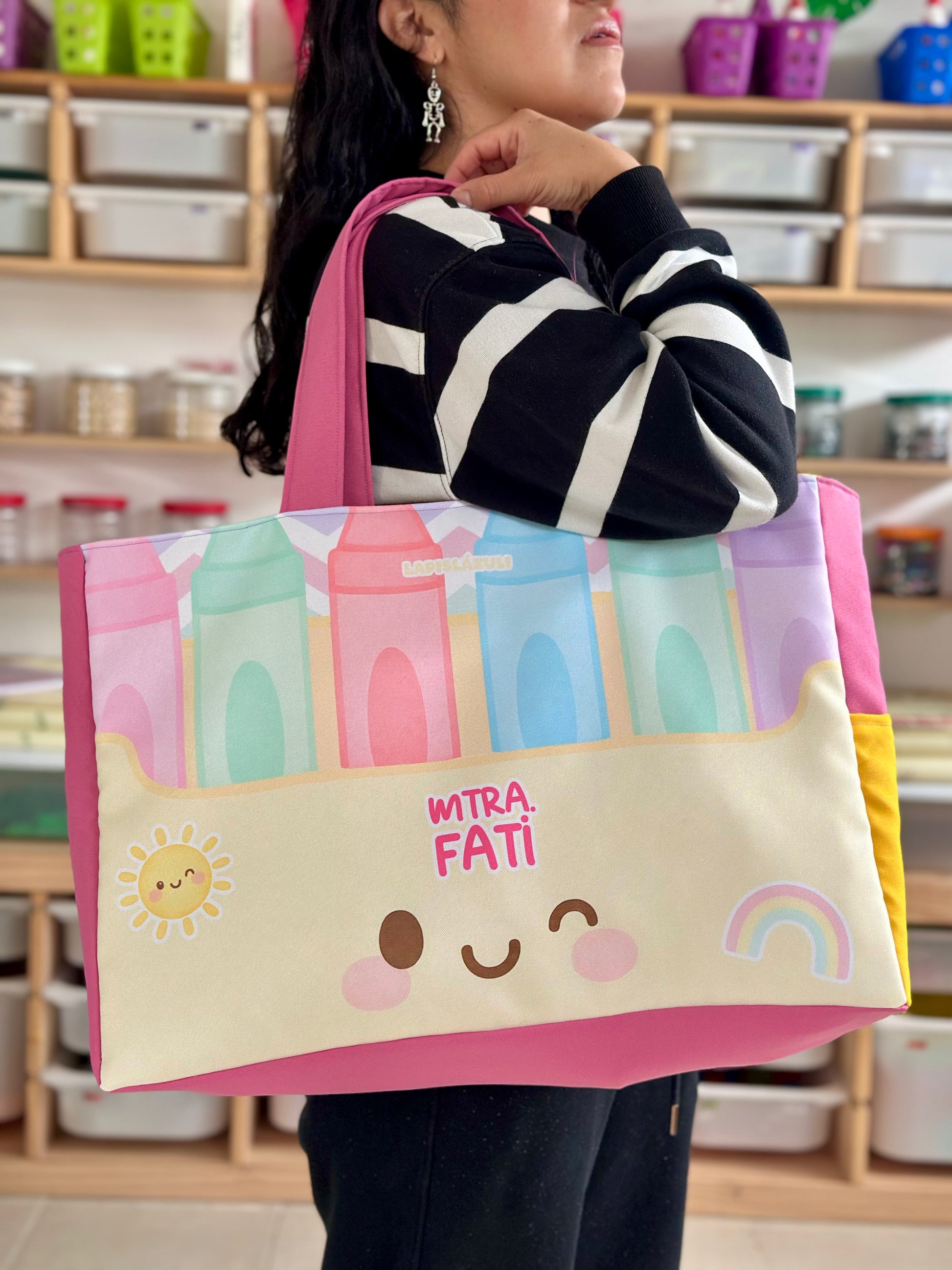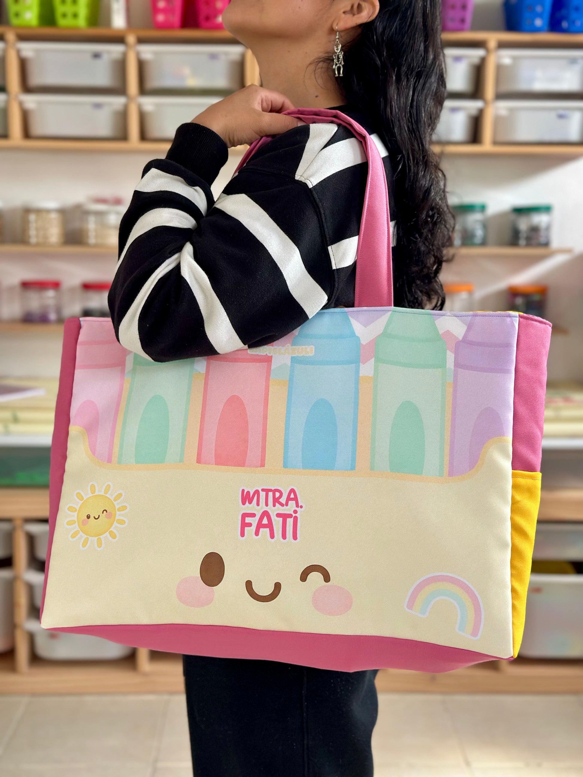 Cada diseño está hecho pensando en ti, en tu creatividad y en el ambiente educativo. Con detalles únicos que reflejan tu pasión por enseñar, tu bolsa se convertirá en una extensión de tu personalidad.